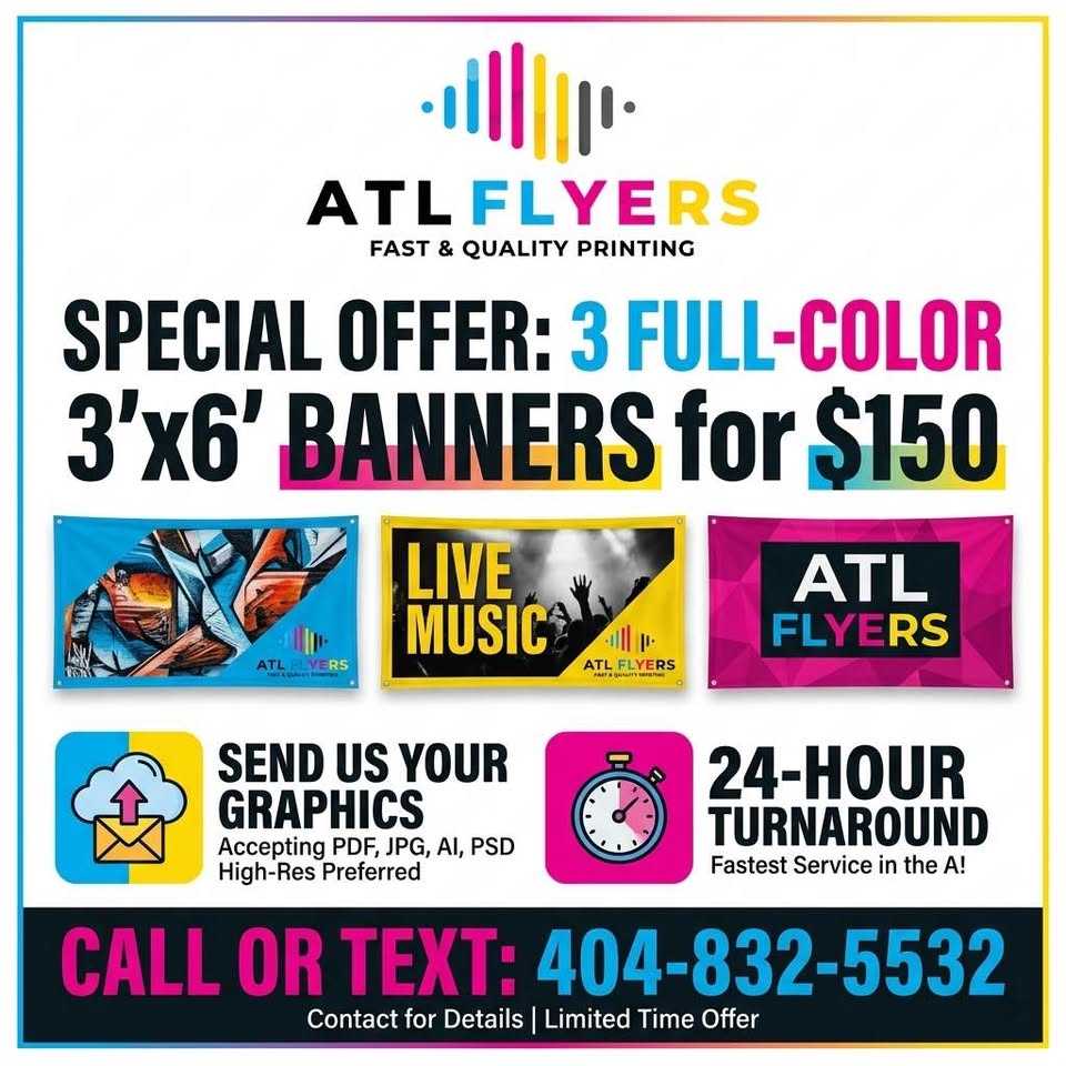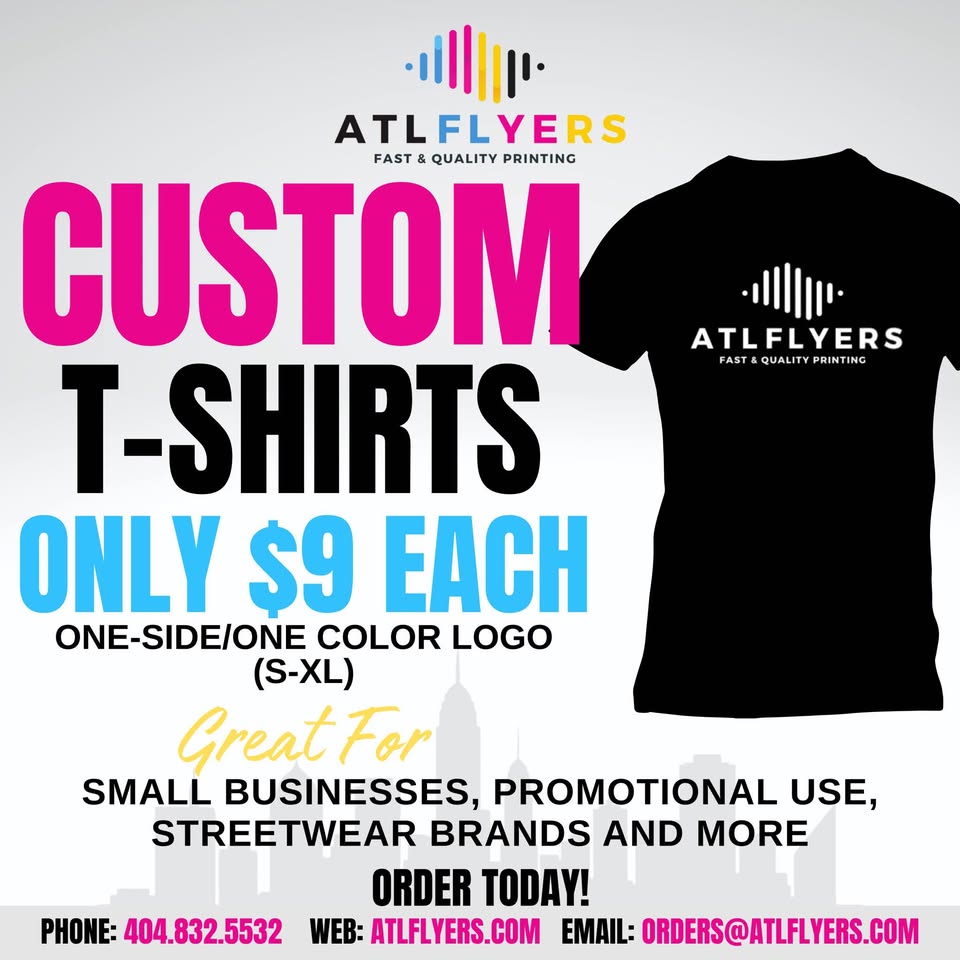 ATL Flyers is a full-service print and promo shop based in Atlanta. We offer design support and a range of products—from flyers and business cards to apparel and signage—to help businesses build their brand.